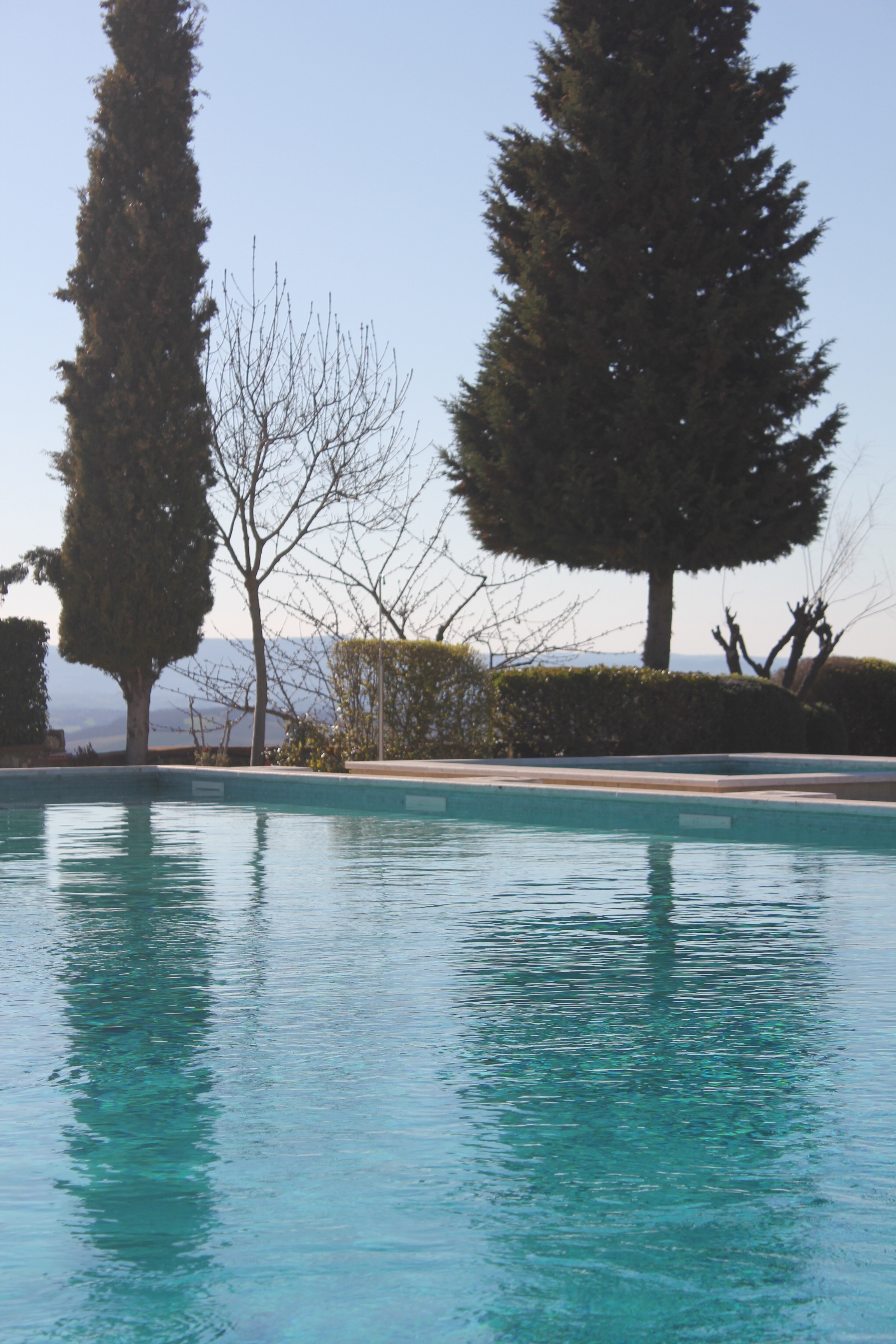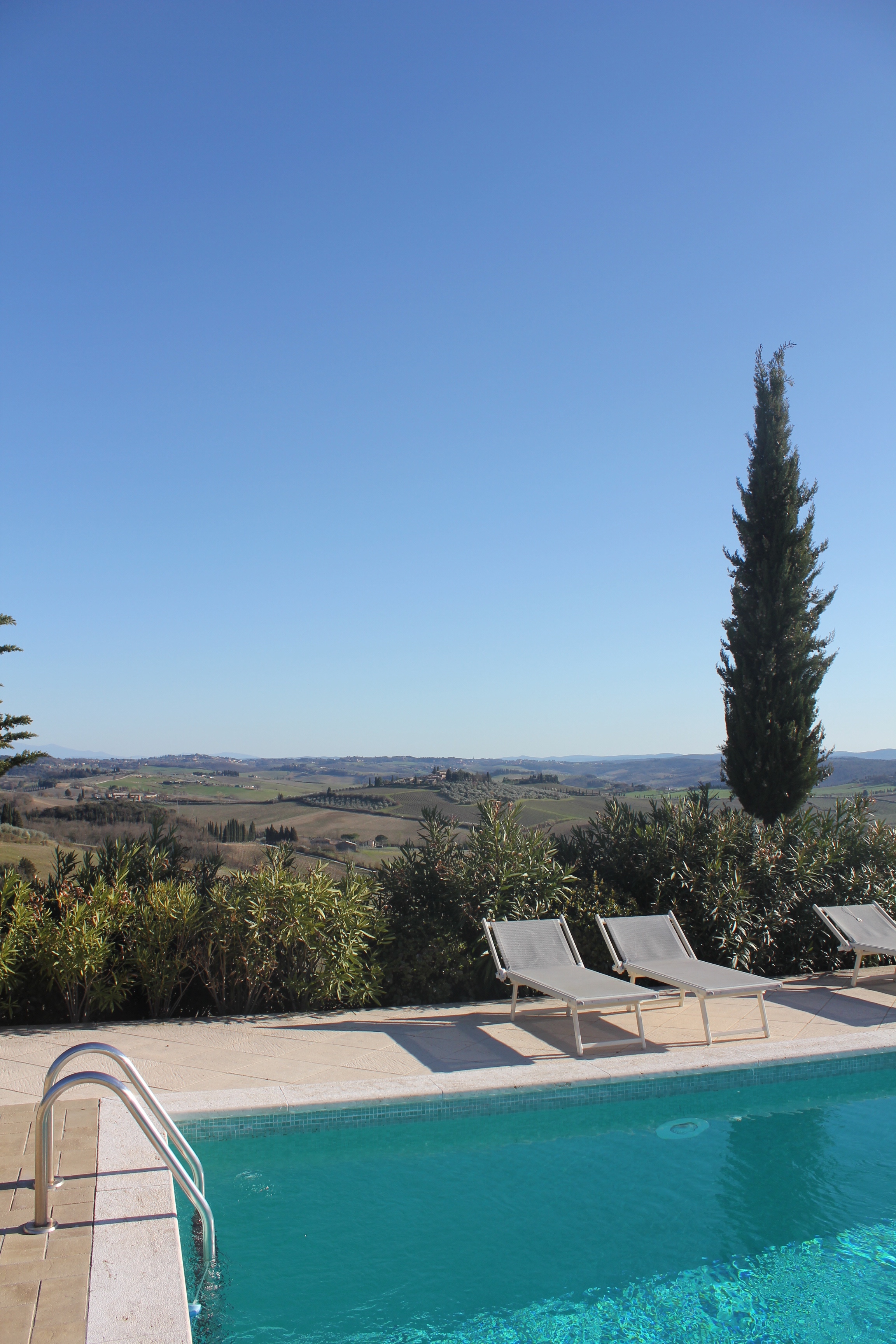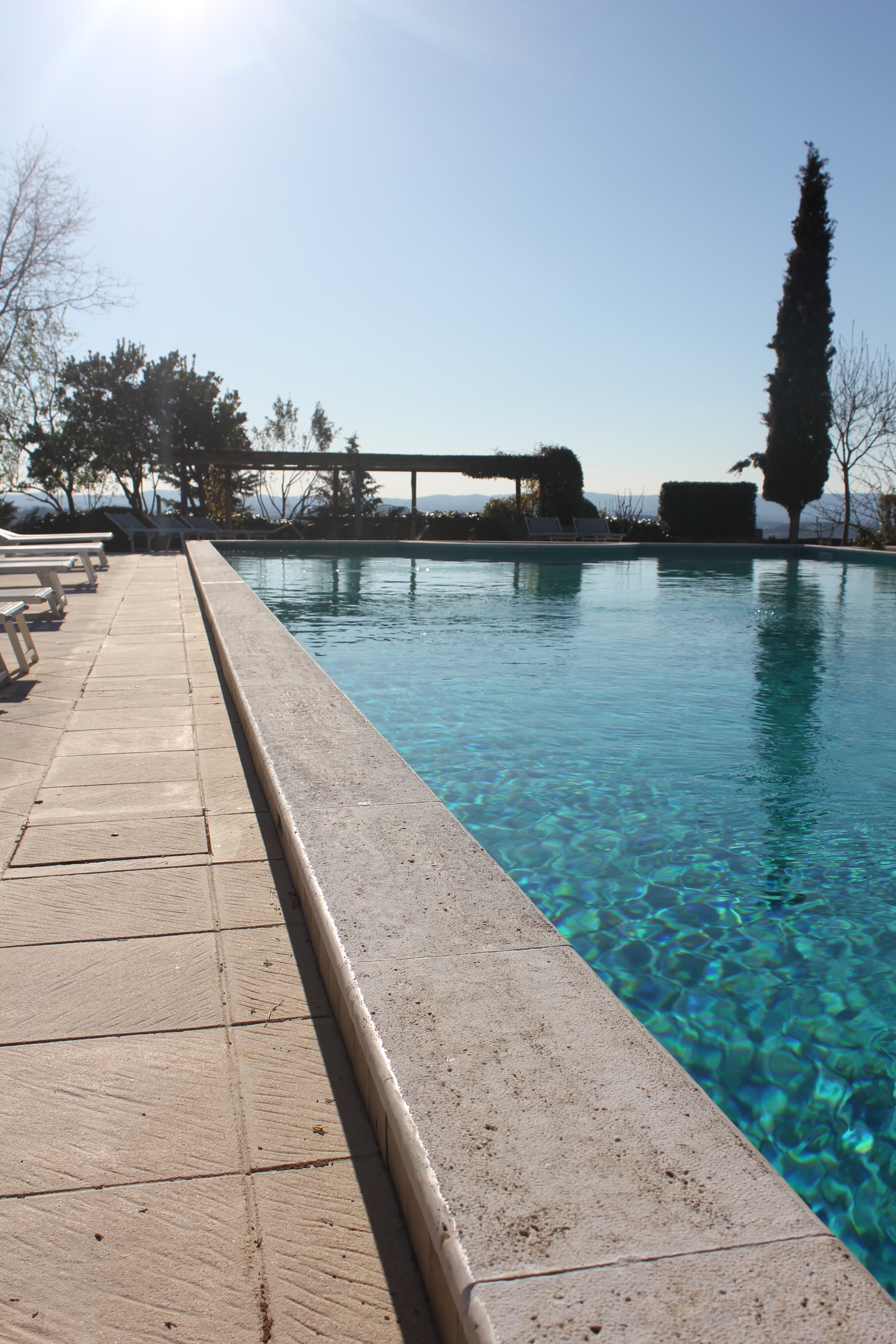 Our barn sits in a small hamlet called Le Bagnaie. There are seven other houses sharing our hilltop. Together we employ a full time gardener, called Cosimo, who makes sure our garden and the whole site look amazing all year round. He also cultivates our kitchen garden so that we can pick basil leaves, heritage tomatoes and zucchini as the seasons allow. He prunes our cherry, white peach and fig trees. And he cleans the 20-metre pool every morning.