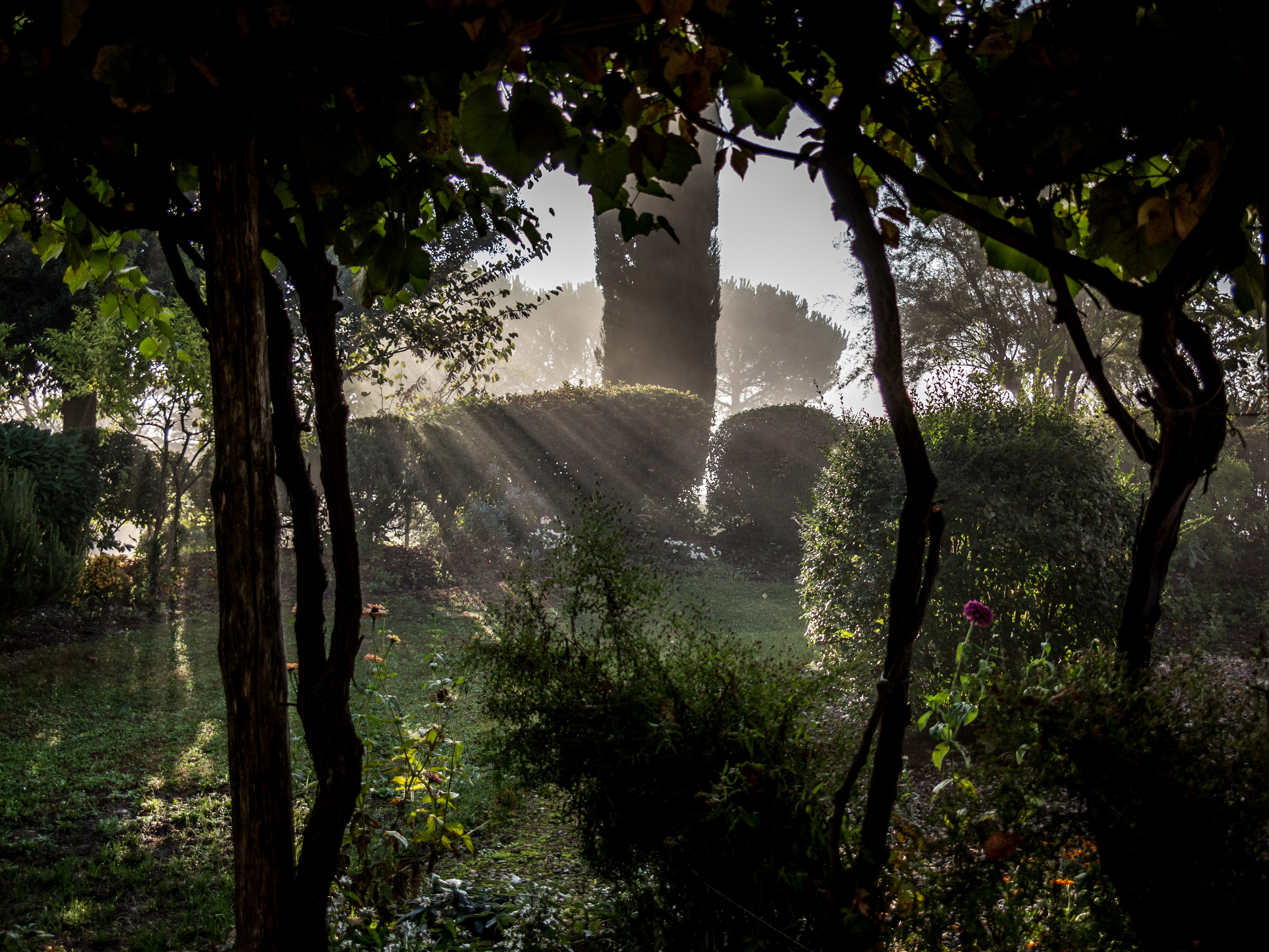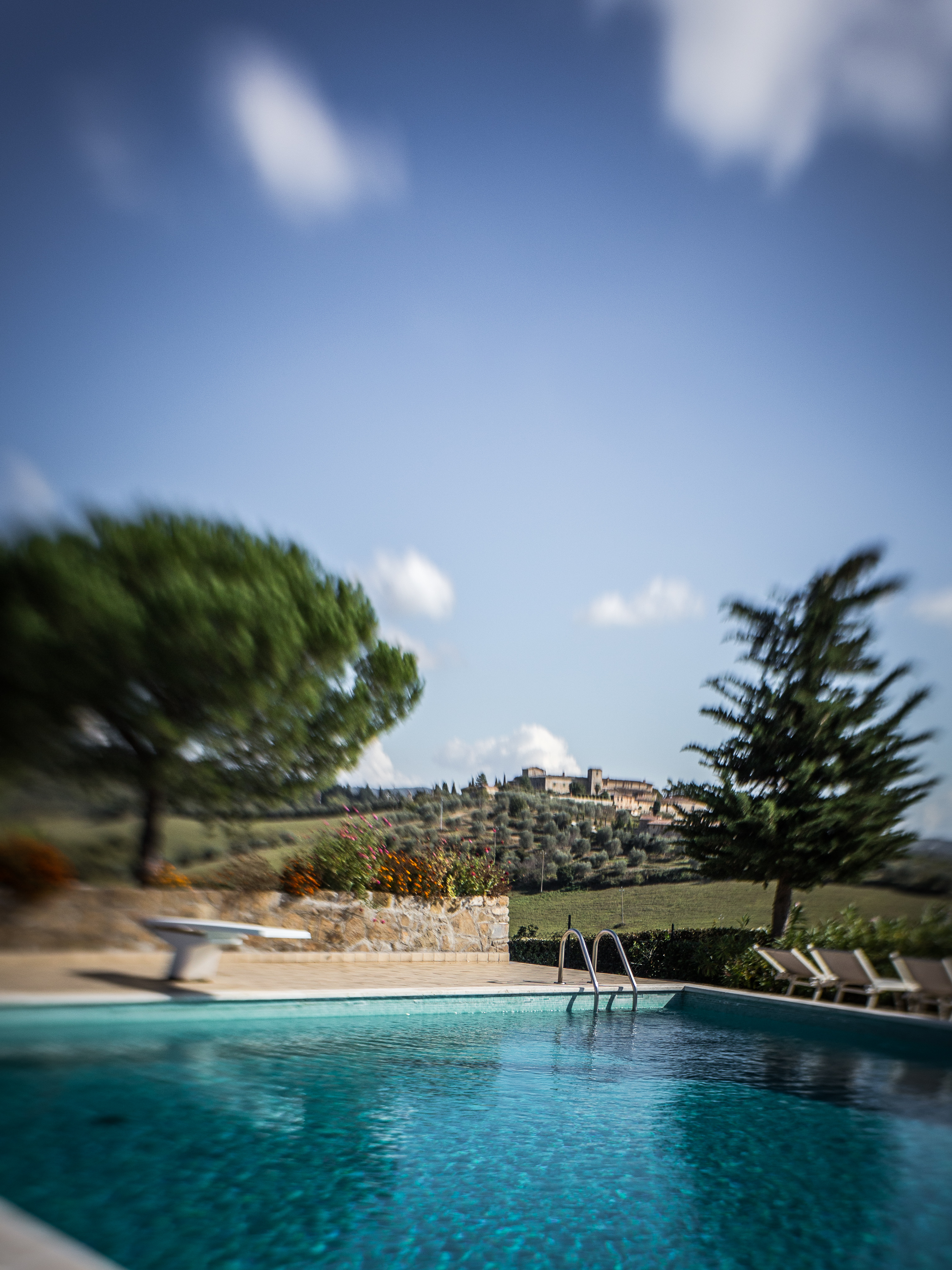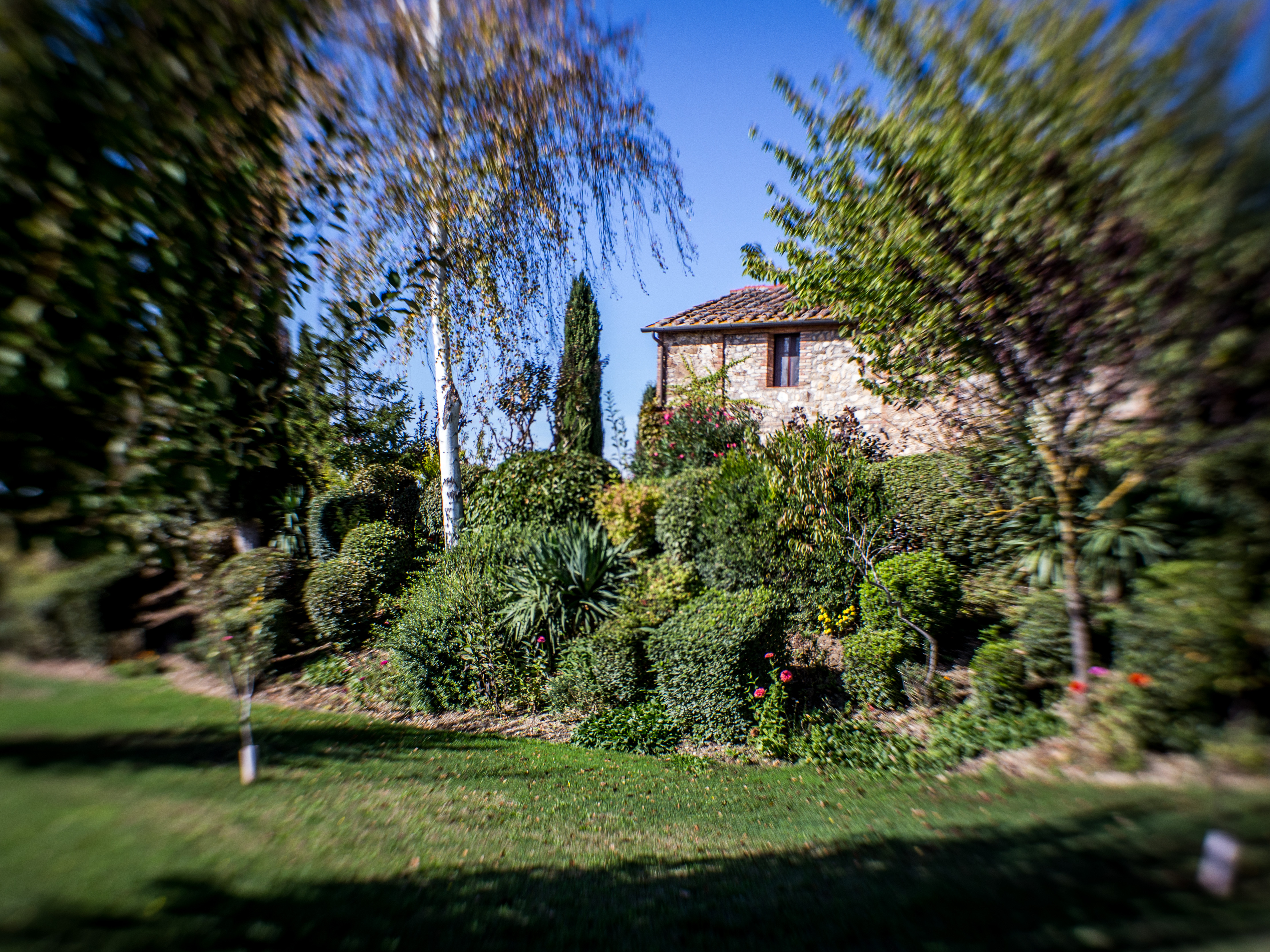 Our barn sits in a small hamlet called Le Bagnaie. There are seven other houses sharing our hilltop. Together we employ a full time gardener, called Cosimo, who makes sure our garden and the whole site look amazing all year round. He also cultivates our kitchen garden so that we can pick basil leaves, heritage tomatoes and zucchini as the seasons allow. He prunes our cherry, white peach and fig trees. And he cleans the 20-metre pool every morning.