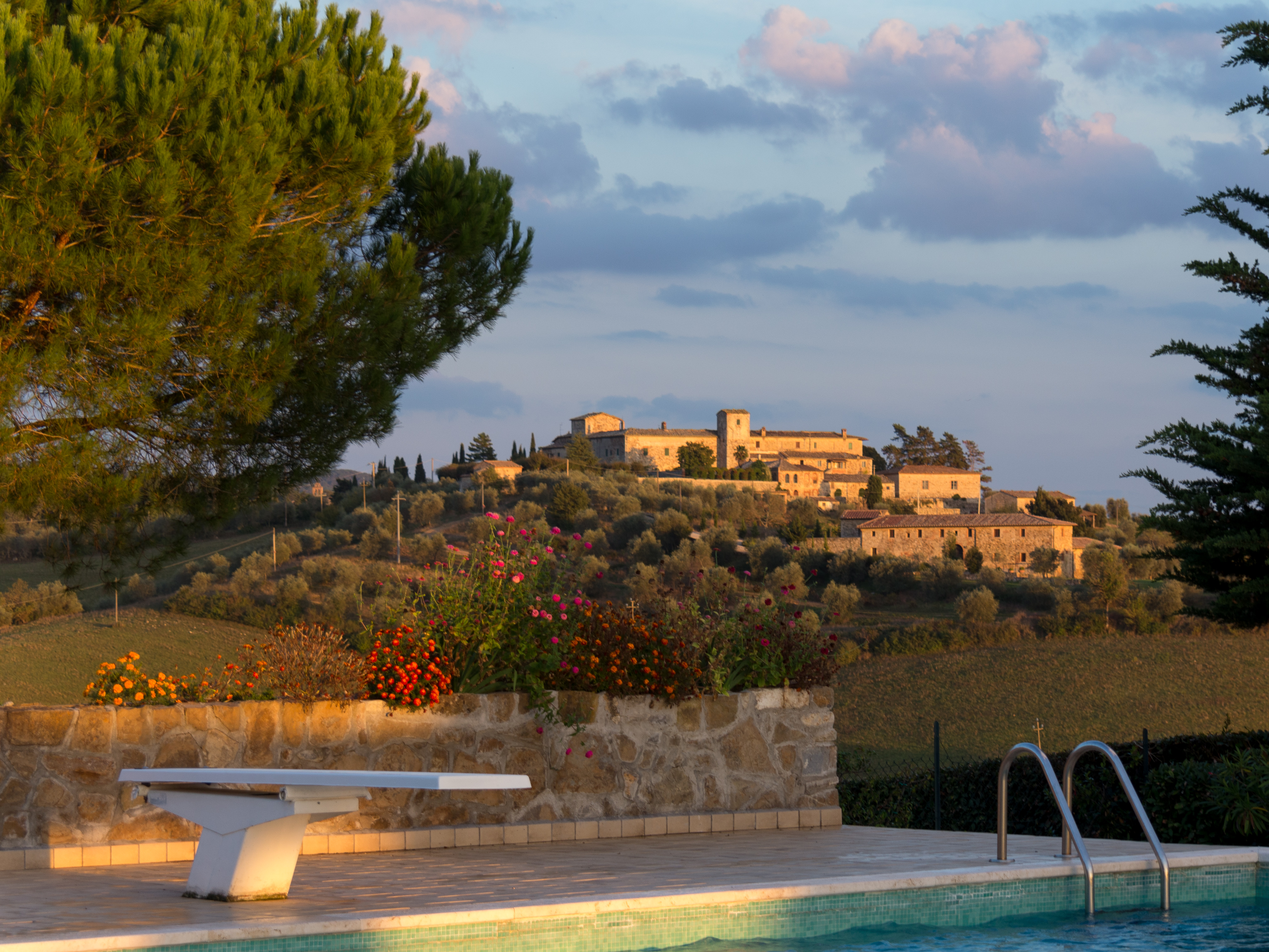 Wandering around Le Bagnaie, you will find a large wood pile if you want to have a wood fire, and a tap by the main gates which gives you Tuscan hill water from our own well.