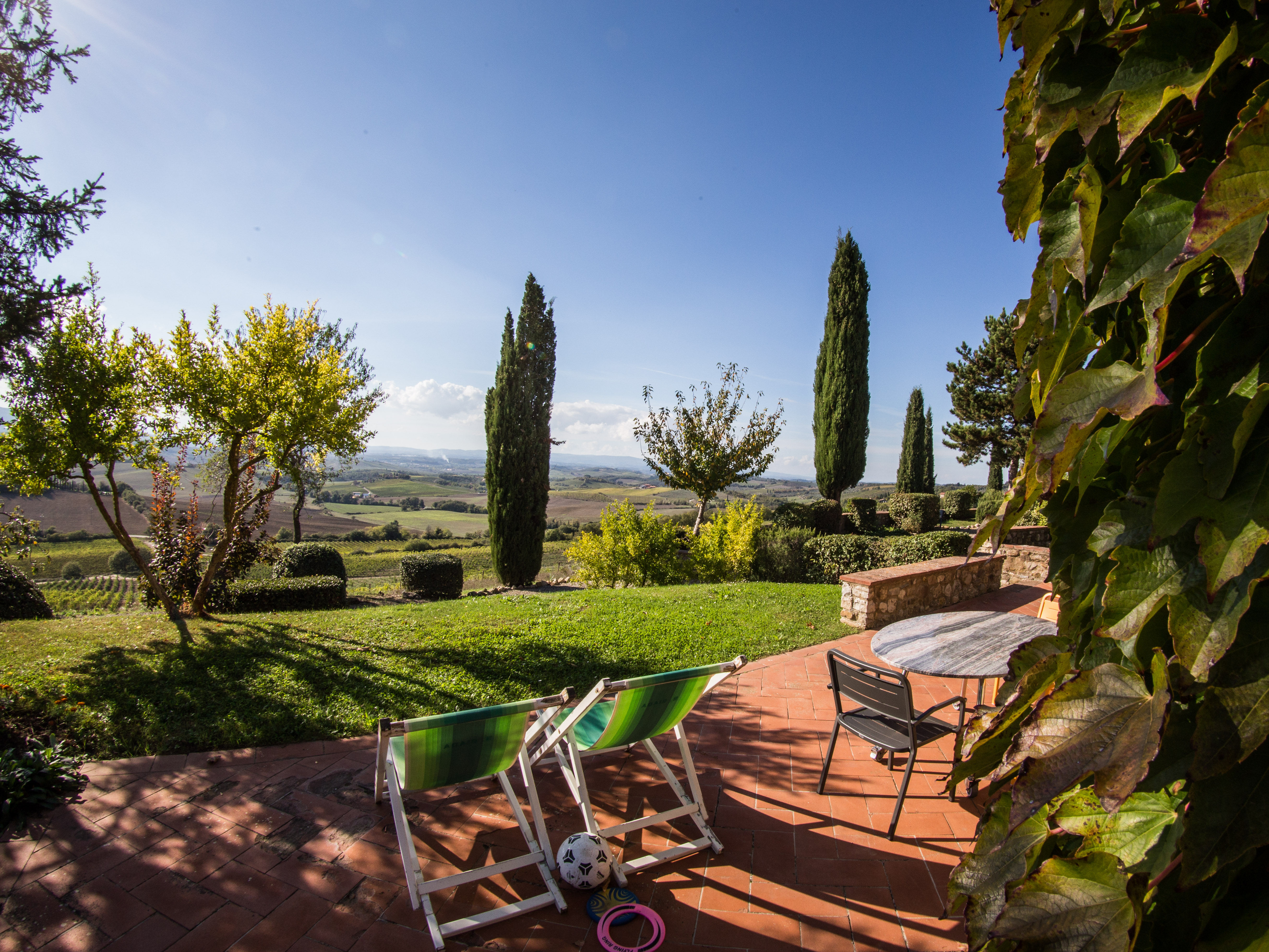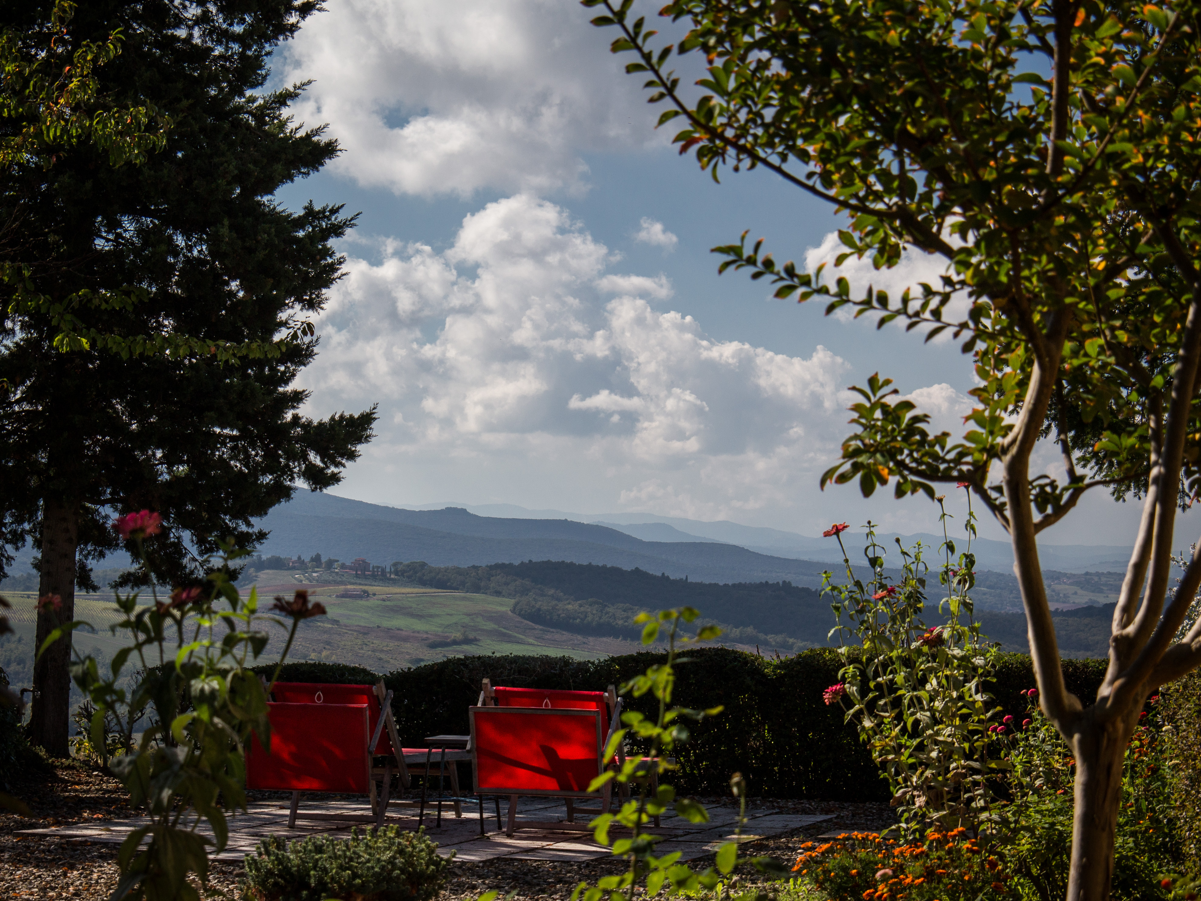 Our large private garden surrounds the house on all sides. There is also a terrace that wraps around the barn. This means you can chase the sun, or shade, or a different vista as the mood takes you.