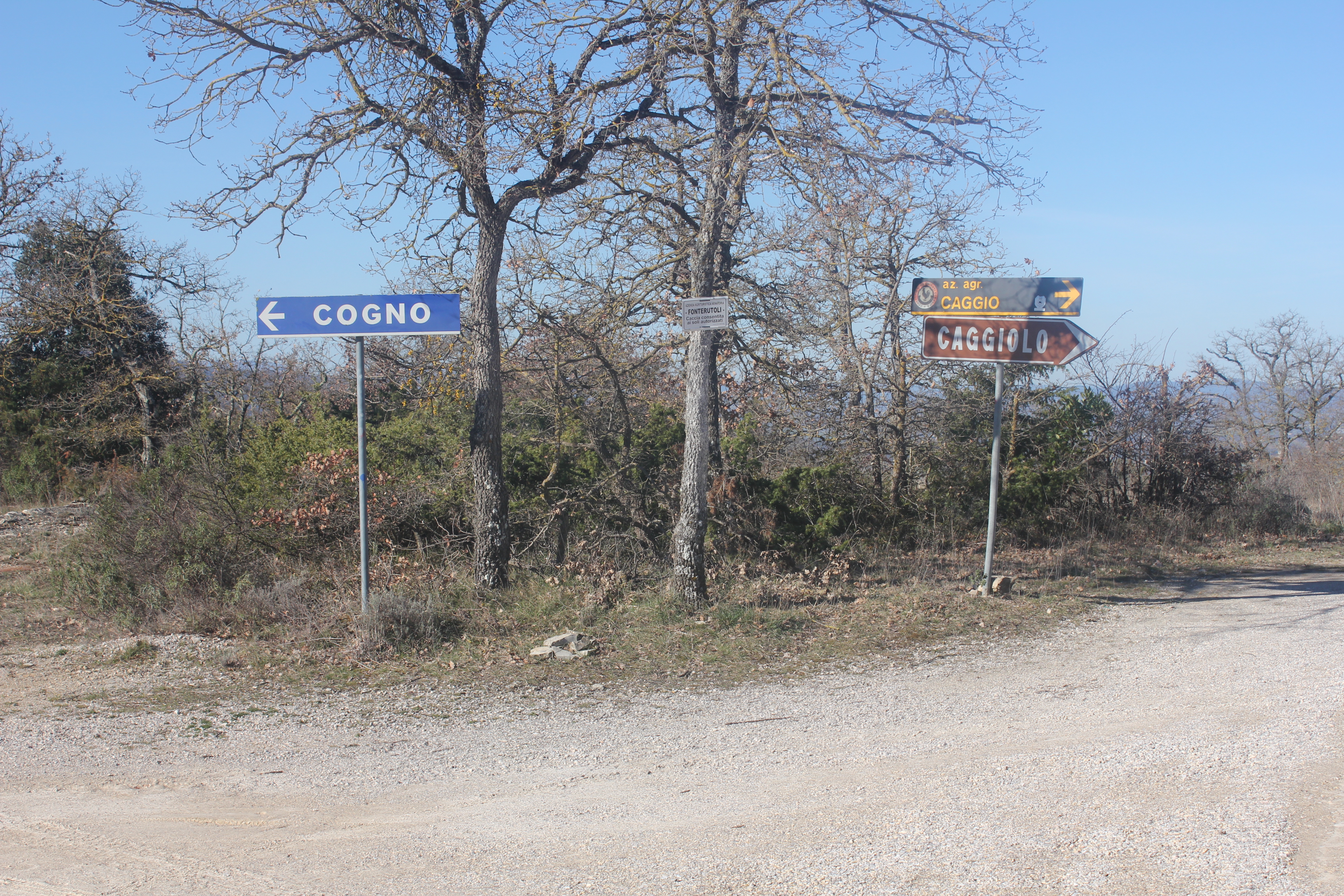 Take the left turning, signposted to Caggiolo. At the next junction, follow the road on the right to Caggiolo. Once you reach Caggiolo, on your left, continuing walking down the road all the way back to the gates of Le Bagnaie.