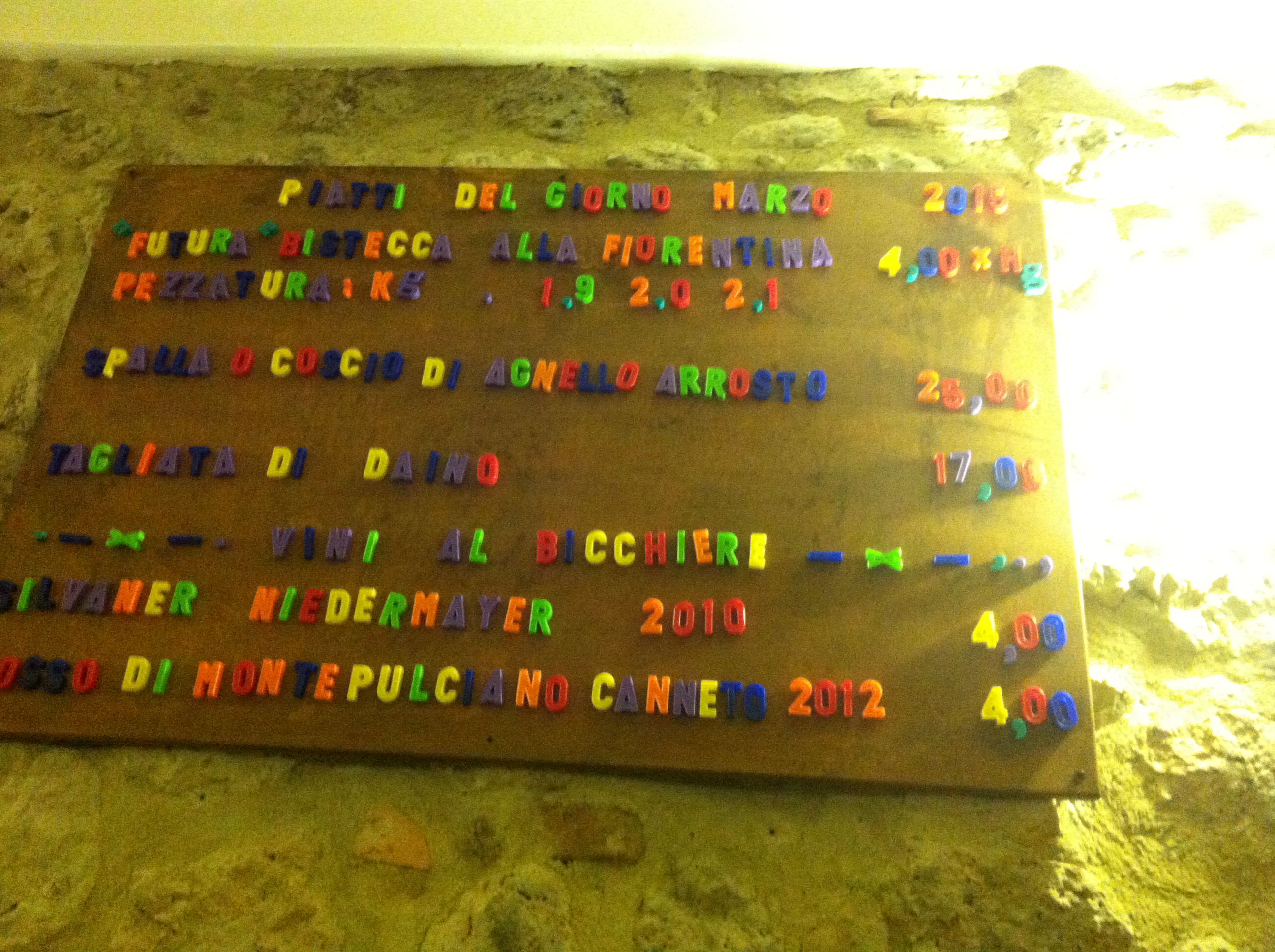 La Speranza – this was recommended to us by the owners of a vineyard making unusual organic wine. It’s another roadside restaurant , which judging by the vans and lorries parked outside is popular with the Italian drivers. As you can see from the picture above, a clue to what makes this so good is the wood cart outside the front door. All the meat is cooked on a wood fired grill. This adds an amazing flavour to your Fiorentina steak – https://plus.google.com/112269423405139658804/about?gl=uk&hl=en